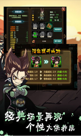《大侠不要停》是一款以武侠世界为题材的卡牌手游,游戏中汇聚了众多武侠世界的经典人物和丰富的技能等你来招募体验!游戏中有很多武侠小说中的场景,倚天屠龙,喜欢武侠的可以来体验一番,也许游戏中小小的你能拯救整个武林喔!