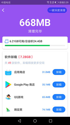 手机卡到爆,马上用内存清理!专门解决手机存储空间不足、手机卡顿的问题!大部分用户都在用的手机清理软件!