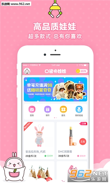 非常流行的抓娃娃软件,不用出门排队,随时随地都可以享受抓娃娃的乐趣,而且各种款式的娃娃这里都有,抓到的娃娃还支持包邮。如果你的技术够好,那么千万不要错过!
