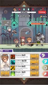 玩家在游戏中点击屏幕让主角对怪物进行攻击,并用击杀怪物所获得的知识结晶来提升主角、伙伴们以及召唤兽的能力,让部队战力提升,不断挑战更艰难的关卡与强敌。