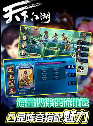 由央广视讯独家代理,同名小说正版授权的MMORPG武侠手游《天下江湖》。勇闯新江湖,感悟真武侠,将带来全新的武侠江湖风暴。 摒弃了传统RPG枯燥的“回合制战斗模式”,采用目前较先进的“即时战斗模式”,极致体验的PK快感,简洁明快的操作界面,华丽炫目的技能施展,让玩家在游戏中更真实的体会原汁原味的真武侠。 私人定制属于玩家的江湖大侠,无论是砥柱少林、问剑武当
