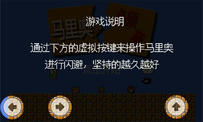 《马里奥必须死》是一款致敬《超级玛丽》的手机游戏。游戏中马里奥遭到了各种怪物的围追堵截,你得想办法帮助马里奥坚持下去!点击屏幕上的左右按钮控制左右移动,灵活跳跃躲避怪物的追击,你能坚持多久呢~