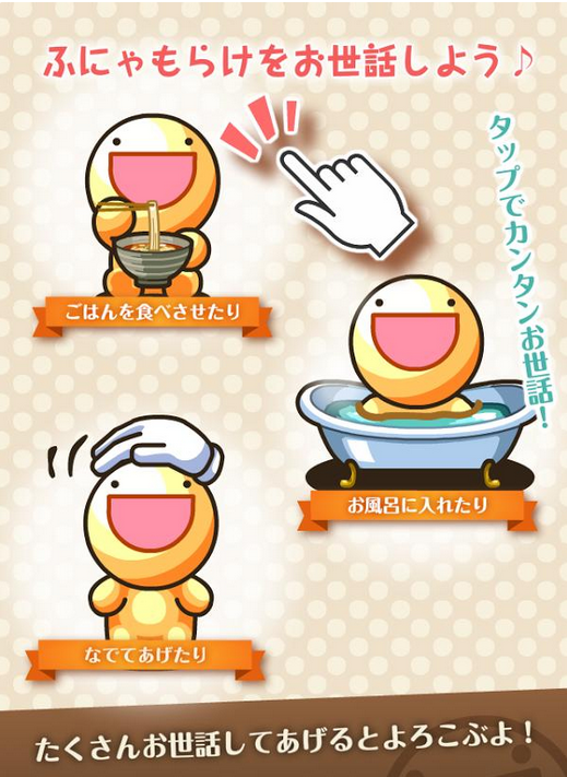 玩家在《ふにゃもらけ》中要饲养一个不可思议的从外太空过来的生物,玩家需要不停得给他喂食,洗澡,陪他玩,所幸的是这只生物还是可以打工赚钱给玩家花的,而玩家则可以用这些赚来的钱来装修自己的房子。。怎么听起来怪怪的?总之这是一款非常不错的养成类手游。