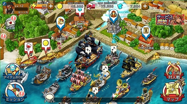 《战斗海贼》是一款精美的模拟经营游戏,由日本游戏公司SEGA推出,游戏画面设计很精美,超有画面感,游戏中有着丰富的故事内容、玩法等,玩家要来建造各种船只,招募海贼伙伴,组织成团,在大洋中开启航海冒险生涯。