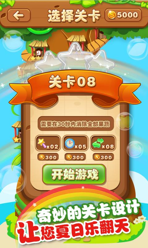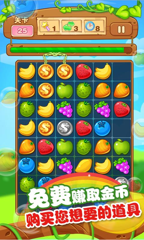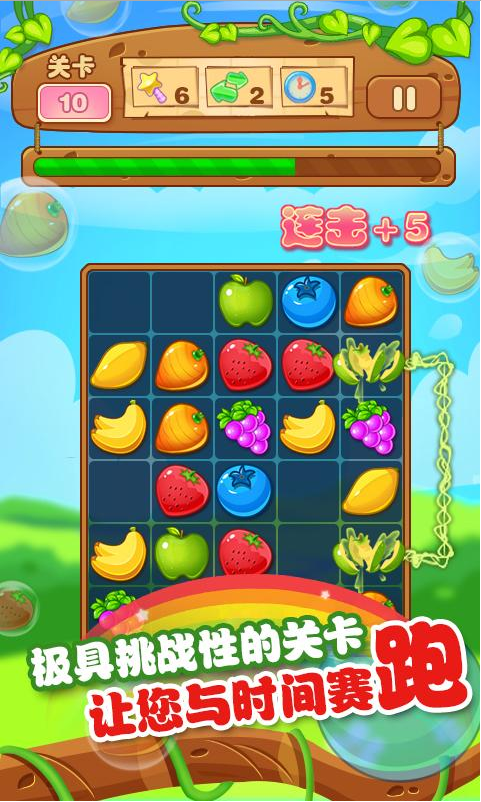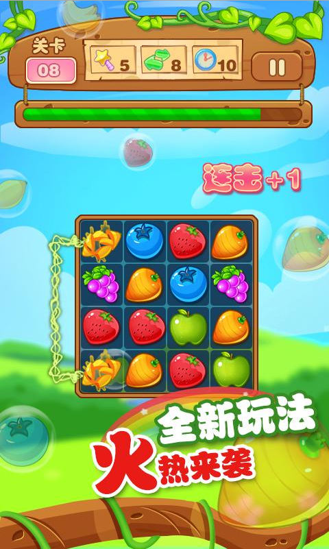 《果蔬连萌》是一款以蔬菜水果为题材的消除类休闲游戏,在游戏中玩家需要将相同种类的果蔬消除掉得分并过关。游戏每一关都采用不同的游戏模式,定能让你爱不释手,刺激无限。加油哦!