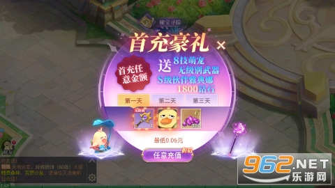 ★福利3:首充即送8技能萌宠、无级别武器以及S级伙伴!