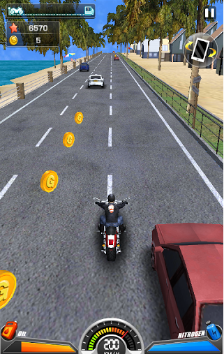 《竞技摩托3D》是一款速度感做的非常好的赛车游戏,随着倾斜手机来控制摩托车的方向,来往飞驰的汽车一辆接一辆的被自己超越,远处渐变的城市,桥梁,海上和森林等等等景色,都给玩家一种仿佛置身其中的体验,非常刺激。