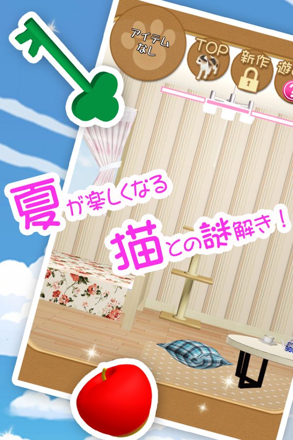 《猫猫逃走的夏天》类型属于时下流行的休闲逃脱游戏。利用道具和提示进行解密吧。主角一只萌萌哒的猫咪,那以一个猫的视角解密是什么有的体验呢?