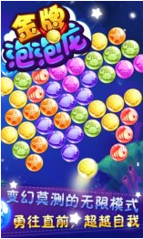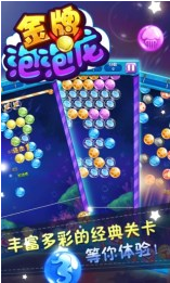 《金牌泡泡龙》是一款休闲类泡泡龙游戏,金牌泡泡龙游戏采用旋转式全新玩法,新增了蓄力功能,让你的泡泡化为火弹,直冲天际,还有闪亮的界面、绚丽的特效,丰富多彩的经典关卡,绝对带给你不一样的挑战体验。