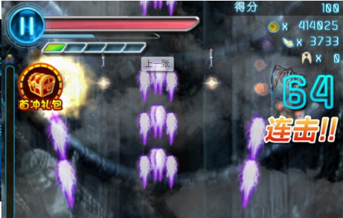 游戏采用滑动进行操作,和雷电游戏一样,躲避子弹,搜集金币和能量,就是你的目标