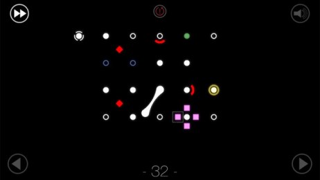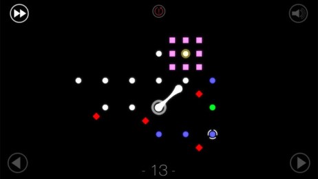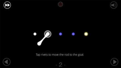 铆钉革命(Rivet Revolution)是一款玩法非常有趣的休闲益智类手机游戏,游戏中玩家们需要利用白条容易被紫点吸引顺时针旋转、绿点吸引逆向旋转的特性,来不断有选择性的点击界面内的白点,让它们变色,引领白条一步步的转向终点。白点变色是有讲究的,你只点它一下,它会变紫;点它两下,它会变绿;点它三下,它还是白色。