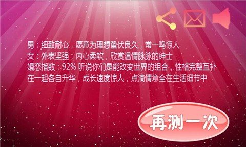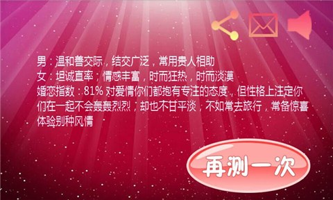 爱情指纹测试是一款神奇的测试爱情软件,只用你和你的对象触碰手机屏幕,游戏就能够根据你们的指纹做出判断,当然你可以选择性地相信游戏给你的判断,因为不管怎么说,游戏就是游戏嘛,不要太较真乐一乐就好。