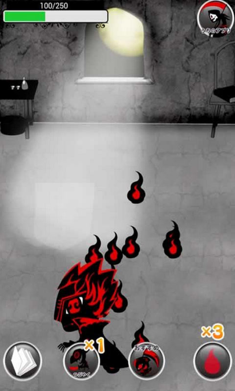 《我的右眼交给你~吸血鬼之恋》是一款育成游戏,但最大的卖点便是融合了电子书的形式,只要点击荧幕出现的灵魂来喂食吸血鬼,就能推动剧情。 因为主打的是剧情,育成的功能只是带动剧情,所以玩法并没有特别之处,基本上只有两个功能,象是将游戏分享到脸书或推特上,灵魂就会生成恢复,而最右边的灵魂火焰则是能直接加经验值,每一小时回复一次,最多集满三次,当经验值集满后,吸血鬼的形态也会渐渐产生变化。