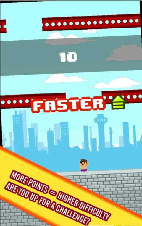 《落荒而逃 Panic Run Free》是一款好玩的休闲娱乐游戏。游戏中,天上不断落下钢铁,你需要控制小人儿左右躲避,从缝隙中求生。游戏的操作很有特点,小人儿会不断左右移动,通过点击屏幕改变他的方向,操作还是非常有难度的,喜欢挑战的朋友下载试试吧!