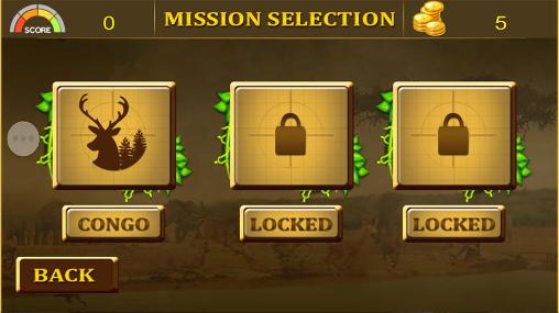 你的狙击步枪瞄准射击,躲在隐藏物后面等待何时的时机,寻找鹿,羚羊,犀牛,大象,和许多其他的动物。小心,有些动物是狮子会攻击你,你开枪后立即撤离,精确瞄准和射击快不让危险的食肉动物靠近你。做任务和解锁新的地点。