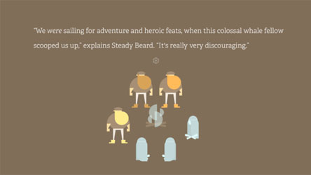 简单的图形、大量的纯色以及恰到好处的留白让画面看上去十分清爽宜人。游戏的主角是长着大胡子的三兄弟,他们虽是小人物却怀揣英雄梦,也一直幻想着能够经历一场惊心动魄的海上冒险,于是三位草根的励志故事由此展开。