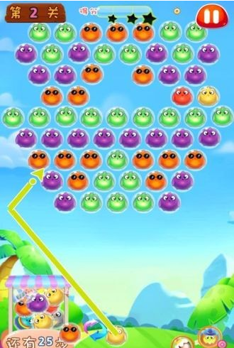 《五彩泡泡鸟》是一款卡通形象的休闲娱乐消除类手机游戏,在游戏中,玩家发射一种颜色的鸟去打下相同颜色的鸟,知道把所有鸟都打完通关。