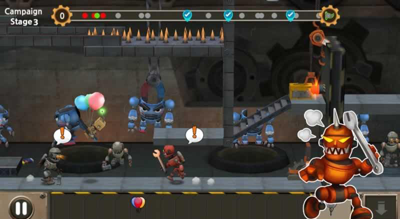 别停下是一款美式风格的横版动作冒险手游,你将帮助小机器人逃离回收工厂,在这个守备森严的地方你需要小心各种机关陷阱,还有敌人的追捕,逃离的机会也许就在一瞬间。