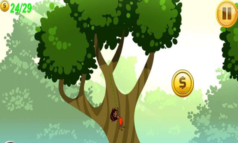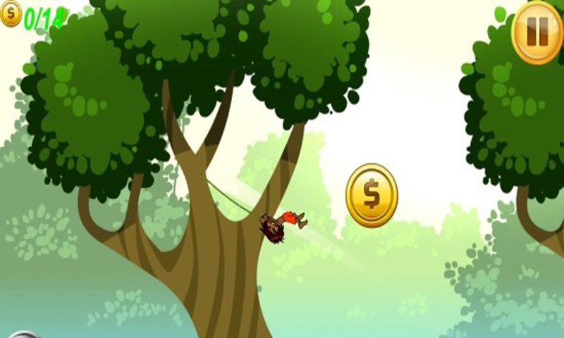 丛林逃生是一款清新卡通画风的空中飞人冒险游戏,生活在丛林深处的小男孩身手敏捷,像猴子一样在树林间跳来窜去,玩家需要把握好时机,控制小男孩从一棵树安稳跳到另一棵树,千万不要掉下来哦!
