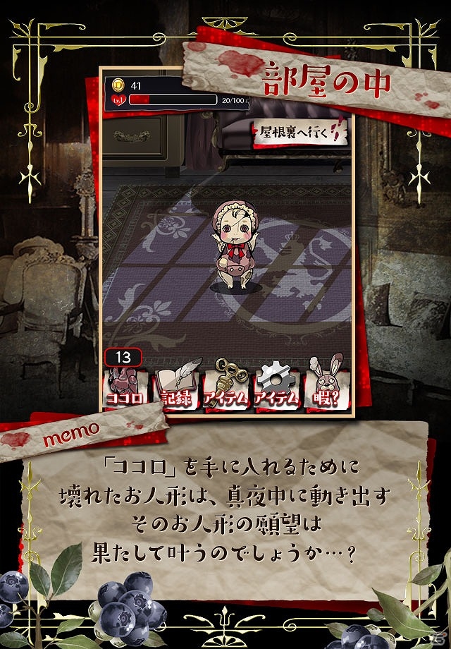 《真正恐怖的人偶故事(本当は怖いお人形の話)》是由日本SEEC打造一款哥特式恐怖手游,里面的各种细节都透露出阴森恐怖的气氛。游戏讲述一个可爱的人偶爱上了人类的故事,触及了“禁忌”的人偶迎来了怎样的结局呢?随着游戏的进展,我们会逐渐揭晓人偶悲伤的过去。以“扭曲疯狂的爱”为主题的故事是本作的亮点,而且具备快速通关的图鉴功能以及多个结局的要素。玩法方面,游戏画面又“养成部分”和“狩猎部分”组成。狩猎部分可以看到在一定时间内收集到的生物。养成部分是显示角色成长记录。狩猎到生物后会获得一些金币,可以用来购买养成道具。