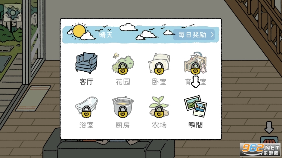 2.家中的舒适度越高角色就会越幸福,能产生爱心让玩家来收集;
