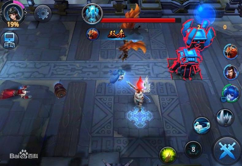 游戏在操作上与传统动作类游戏一样,采取了虚拟摇杆加虚拟按键的操作模式,左边的虚拟摇杆控制人物的行动走位,右边的按键为攻击、释放技能或切换人物。为优化游戏的体验,游戏采用非固定的虚拟摇杆,玩家的手点到哪儿,摇杆就会自动跟随到哪儿。对于这样一款注重操作的动作游戏,非固定的虚拟摇杆很大程度上减少了误操作的问题。