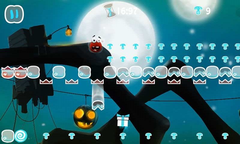 每个场景下有着30个关卡设计,因为这是一款考虑操作的游戏,因此30个关卡对小编这种战斗渣来说还是够玩一段时间的(捂脸~~(>_<)~~ )。游戏中玩家需要控制Devi在规定的时间内吃到所有的蘑菇成功到达天堂的出口即可通关。虽然所没有在规定时间,也没有吃到所有的蘑菇就到达出口的话也可以通关,不过如果想要得高分在你朋友面前炫耀,还是得下点功夫了。