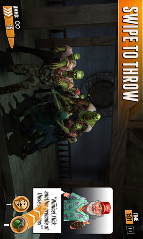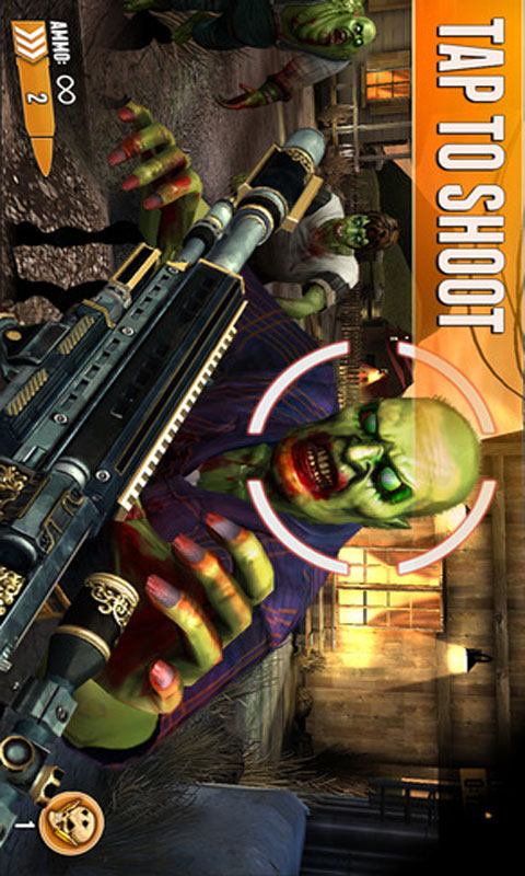 游戏点射模式和自动转换镜头的配合,这种复古的街机射击模式在移动设备上几乎完美解决了FPS游戏在移动设备上操作上的适应性问题,同时也不再是无聊的“站桩式”射击。由于采用的是简单的即点即射模式,玩家在游戏过程中只要对着僵尸点击就会射击。