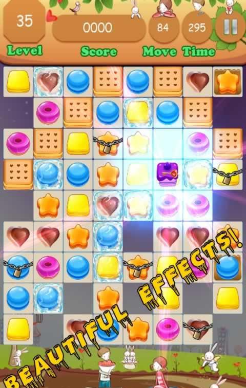 《曲奇传说 cookies Legend》是一款休闲娱乐游戏。在糖果的甜蜜国度里来了许多新鲜的曲奇饼,我们需要帮助这里的人,将散落的曲奇匹配并整理好。将三个以上的曲奇饼干排列到一起就会消失,达到四个和五个还可以合成出具有强大能量的曲奇。你想在曲奇饼干的世界里进行一场游戏吗?现在就开始吧!