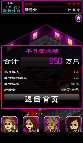 《我的敲竹杠BAR》是一款比较另类的经营类手游,通过敲竹杠的方式获得巨大盈利,游戏中你将帮助可怜的男主还清一亿元的债务,这个貌似很艰巨的任务,就要看你如何经营了,多招揽一些大佬吧!