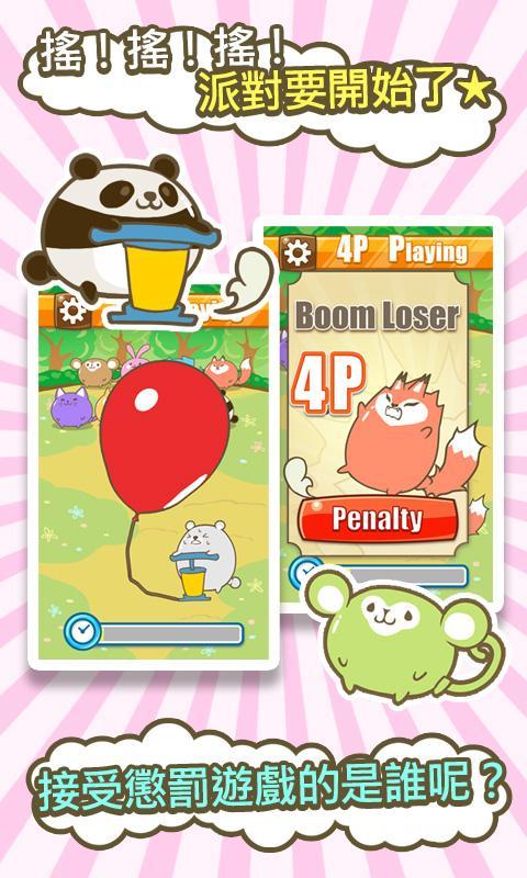 《气球嘭嘭(Balloon Blast)》是一款以吹气球为主题的多人游戏,游戏最多支持8名玩家同时参与,玩家需要轮流摇动手机替气球充气,若气球被吹到爆炸,那么这名玩家就必须进入惩罚游戏接受审判。