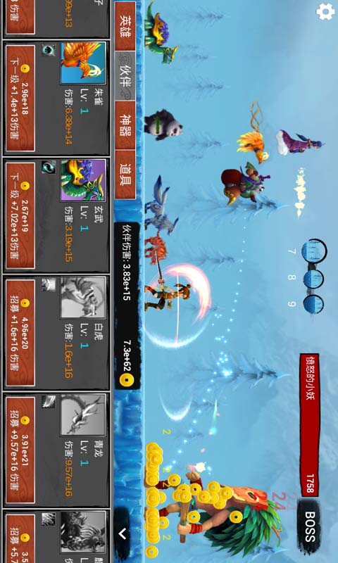 2.游戏中30位“伙伴”召唤,各类神兽,各路神仙只要你来都会成为你的忠实伙伴助你一路斩妖除魔;