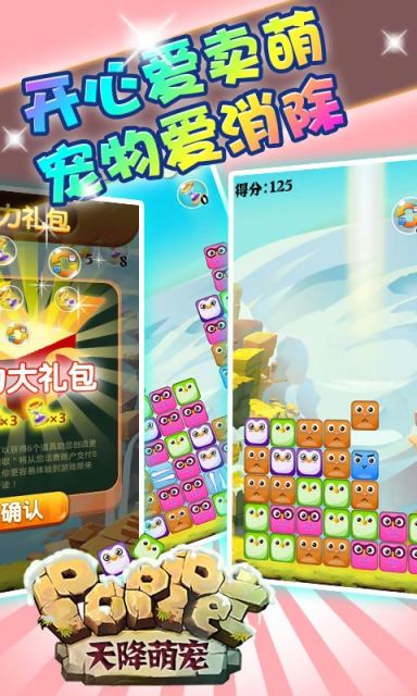 天降萌宠是一款萌宠消消乐休闲小游戏,工作学习之余,是该让大脑得到片刻的放松了,然而太费脑经的游戏是不适合玩的,萌萌哒消除类手游是最佳推荐哦,萌宠消消乐更和你的眼缘呢!