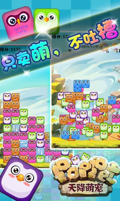 天降萌宠是一款策略消除游戏,不仅需要玩家依靠自己的智慧步步为赢坚持到最后取得胜利,还需要过人的反应力方能取得高分。游戏画面暖暖的,呆呆的企鹅、可爱的小鸟、楞楞的鸭子、聪慧的猫头鹰、胆小的喵星人,一切是那么的有趣。让我们一起享受消除带来的快乐吧。