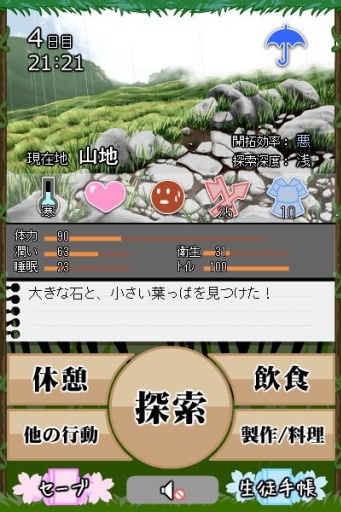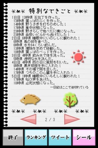 在岛上探险,找到食物。需要寻找水源,保证自己的体温,避免自然灾害。此外,岛上隐藏着许多危险的猛兽,所以需要使用武器战斗。