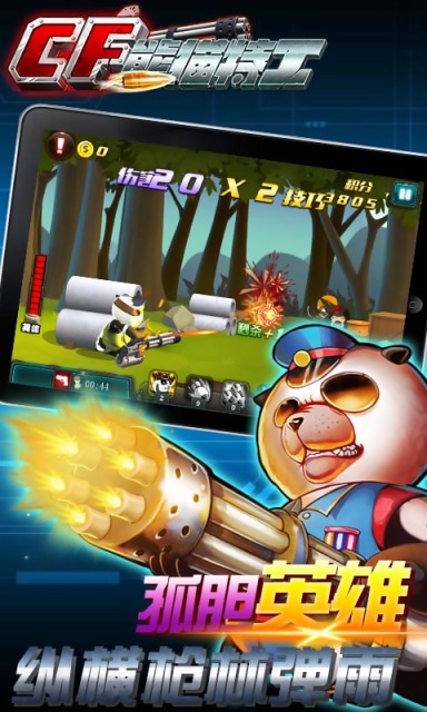CF熊猫特工是一款穿越火线类型的熊猫特工版飞行射击手游,萌萌哒熊猫作为特工回事什么样子呢?当然是严肃机甲装,批命装酷也掩饰不了萌动可爱的本性,但是他是特工,他要穿越火线去战斗!