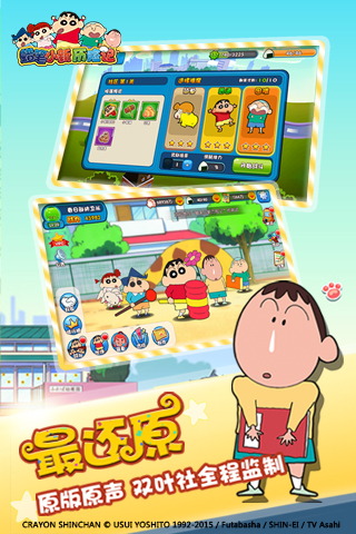 该作由双叶社全程监制、动画采用原声配音、游戏内场景通过动画原貌场景植入,每一处游戏都与动漫作品丝丝相扣,力求为玩家打造最原汁原味的《蜡笔小新》精品手游。同时,为使《蜡笔小新历险记》更加适应中国玩家的需要,游戏中还特意加入了角色养成、装备提升、好友助战、技能搭配等诸多精彩玩法。相信《蜡笔小新历险记》的趣味性和可玩性,将会为玩家带来精妙绝伦的游戏体验!