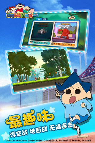 蜡笔小新历险记官方正式版是一款出自日本人气动漫蜡笔小新的正版授权,改编而来的综合性大型闯关手机网游作品,贱萌的小新是很多人的童年小伙伴,这款游戏让你进入小新的世界,与他一起生活,一起冒险,一起玩耍。