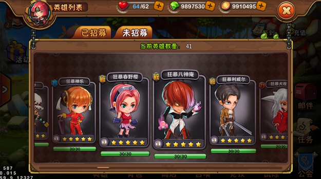 1、游戏采用各种动漫游戏乱入背景,设计大量80和90后熟知、喜爱的英雄、