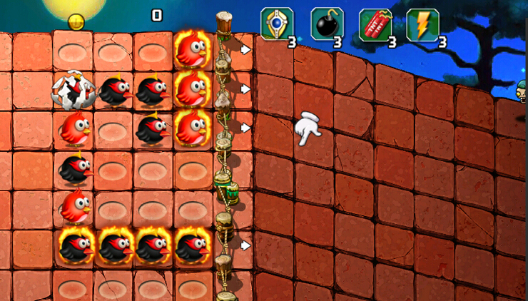 《小鸟大战僵尸3》是一款休闲游戏,帮助小鸟抵御可怕的僵尸部落入侵。匹配3个和更多的鸟类,使他们的攻击更强大,使用逻辑和策略才能停止游戏中的僵尸。把鸟放在攻击僵尸前。