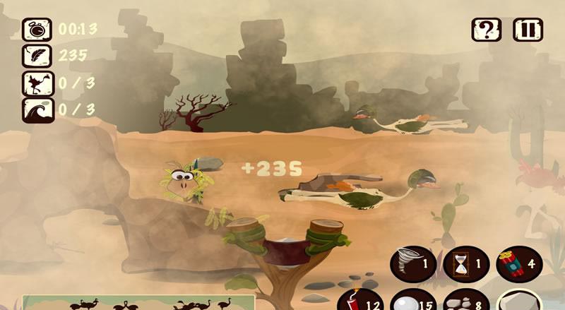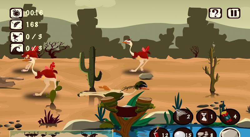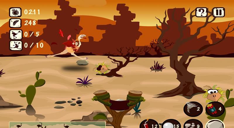 《沙漠猎手 Desert Hunter》是一款挺有趣的弹弓射击模拟器。游戏中玩家的主要任务就是追捕鸵鸟,游戏操作也很简单,有点类似于愤怒的小鸟和打鸭子的结合体。除了弹射石头外,游戏还配有其他有趣的武器,把玩起来挺有意思的。