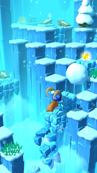 这是一款很休闲的小游戏,玩法比较简单,只需要控制好山羊不停地跳跃,有时候走不通的地方需要滑动来进行转向。游戏中你需要保持山羊体力,过一会就得找草给它吃,另外你还需要躲避从天而降的各种障碍物,防止砸到山羊,跑得快当然很好,但是要小心前方是否是悬崖或者水池,跳过去就GAME OVER,游戏里面还有一些道具,可以改变山羊的状态或者进行高空弹跳,另外收集金币还可以解锁不同功能的山羊。