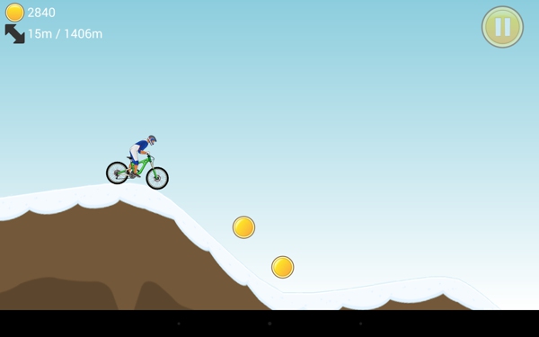 控制一个骑自行车的小人,在各种障碍的情况下下山,克服障碍和收集硬币。在崎岖不平的地形上做极限自行车比赛。倾斜你的设备来控制骑自行车的人,不要让他倒下。骑在最大速度,跳过坑,使用坡道和循环。在路线的困难部分刹车。购买新自行车和改善他们。