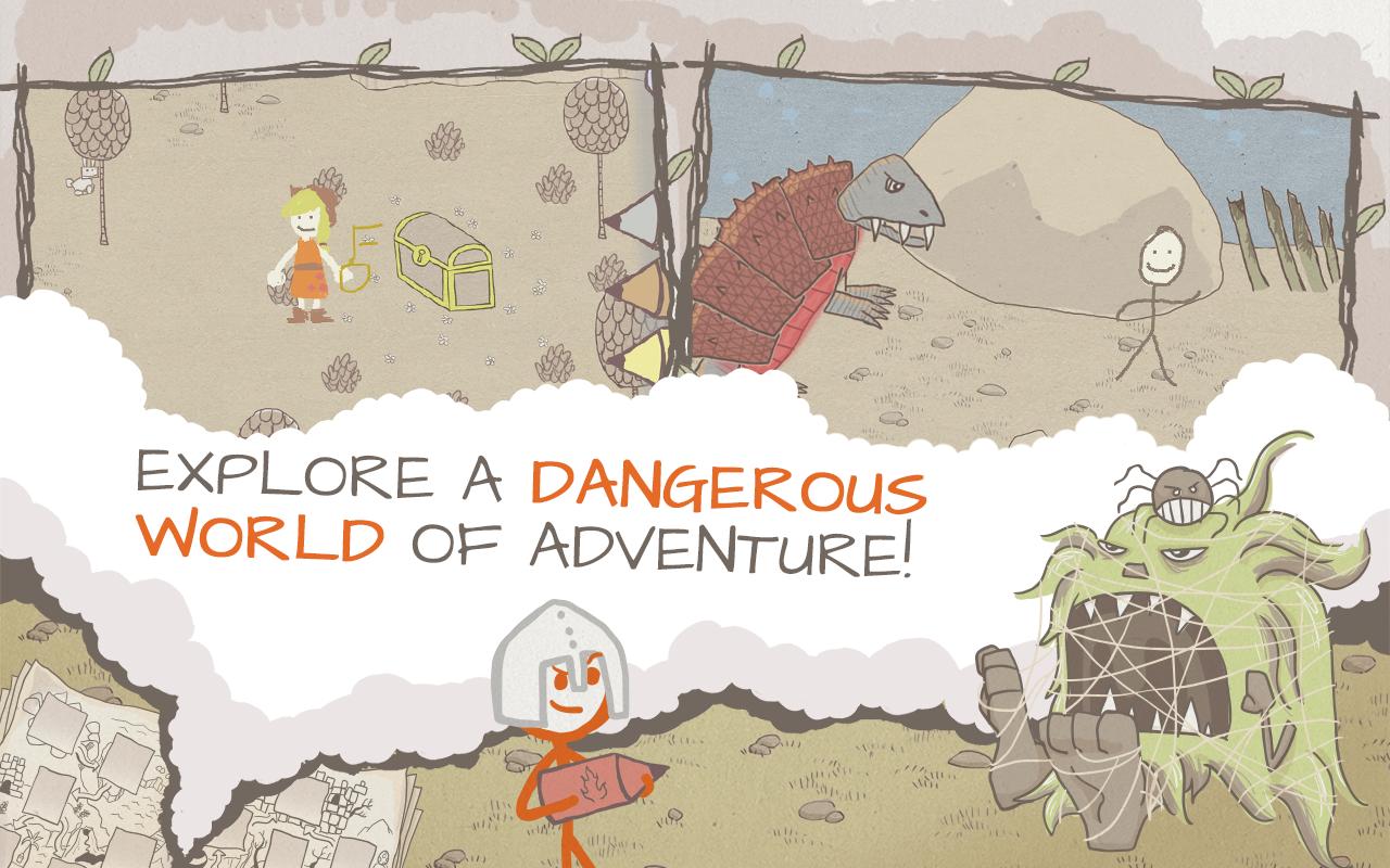《火柴人涂鸦:传奇冒险》可以媲美任何一款冒险游戏、角色扮演游戏亦或是益智游戏,其独一无二的绘图机制是你在其他游戏中从未体验过的!从画朵雨云滋润植物生长到画把斧头砍倒大门,周围的环境尽在你的掌握之中。随着你一路画着勇闯14关(外加一个隐藏奖励关卡),你将会探索各种不同环境,遭遇非同寻常的生物!由于玩法的非线性规则,下一个解锁的关卡将取决于你攻克当前环境的方法。每一关都充斥着各种隐藏的秘密和成就,使得玩家百玩不厌。拿起铅笔,进入传奇冒险世界!