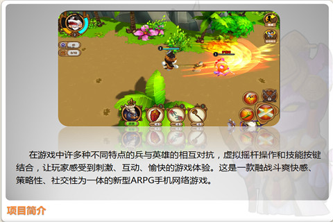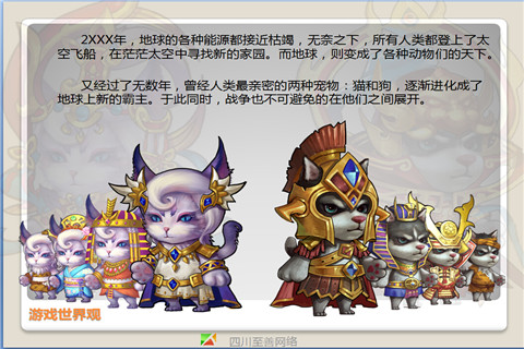 游戏角色设计为Q版的猫、狗拟人化,场景风格独特华丽,流畅而富有打击感的动作,再加上丰富的策略选择。