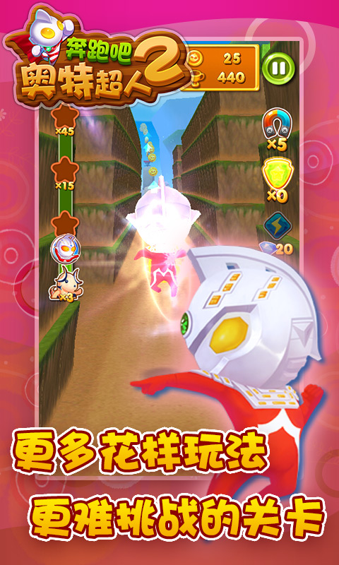 奔跑吧奥特超人2是Q萌奥特曼跑酷游戏系列第二代作品,大家喜爱的萌萌哒咸蛋超人又回来陪你们一起奔跑了哦,啥,怎么不去打小怪兽?在这里,奔跑就是奥特曼小超人的战斗模式,发足狂奔吧!