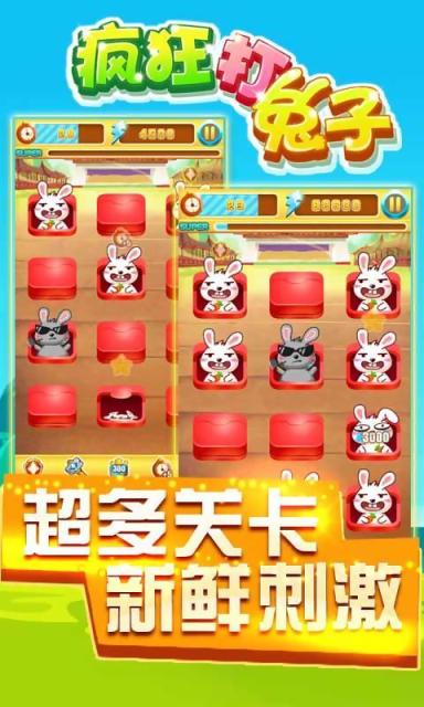 疯狂打兔子是一款打地鼠延伸兔子版休闲小游戏,经典的手动敲打冒出头来的贱萌小动物玩法是很多玩家的休闲最爱,而萌兔子版更是让人把持不住,咧嘴露出两颗稀缺的小门牙,这么可爱怎么可以打兔兔~