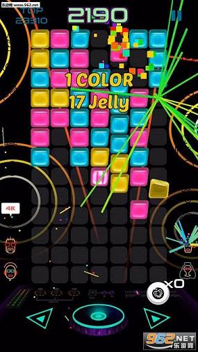 果冻DJ 是来自 111%的游戏,这是这家开发商第一次尝试益智消除,把任意块拉下来,再发射出去,完成爆炸,细节还不错。游戏是无限的,符合其一贯的风格