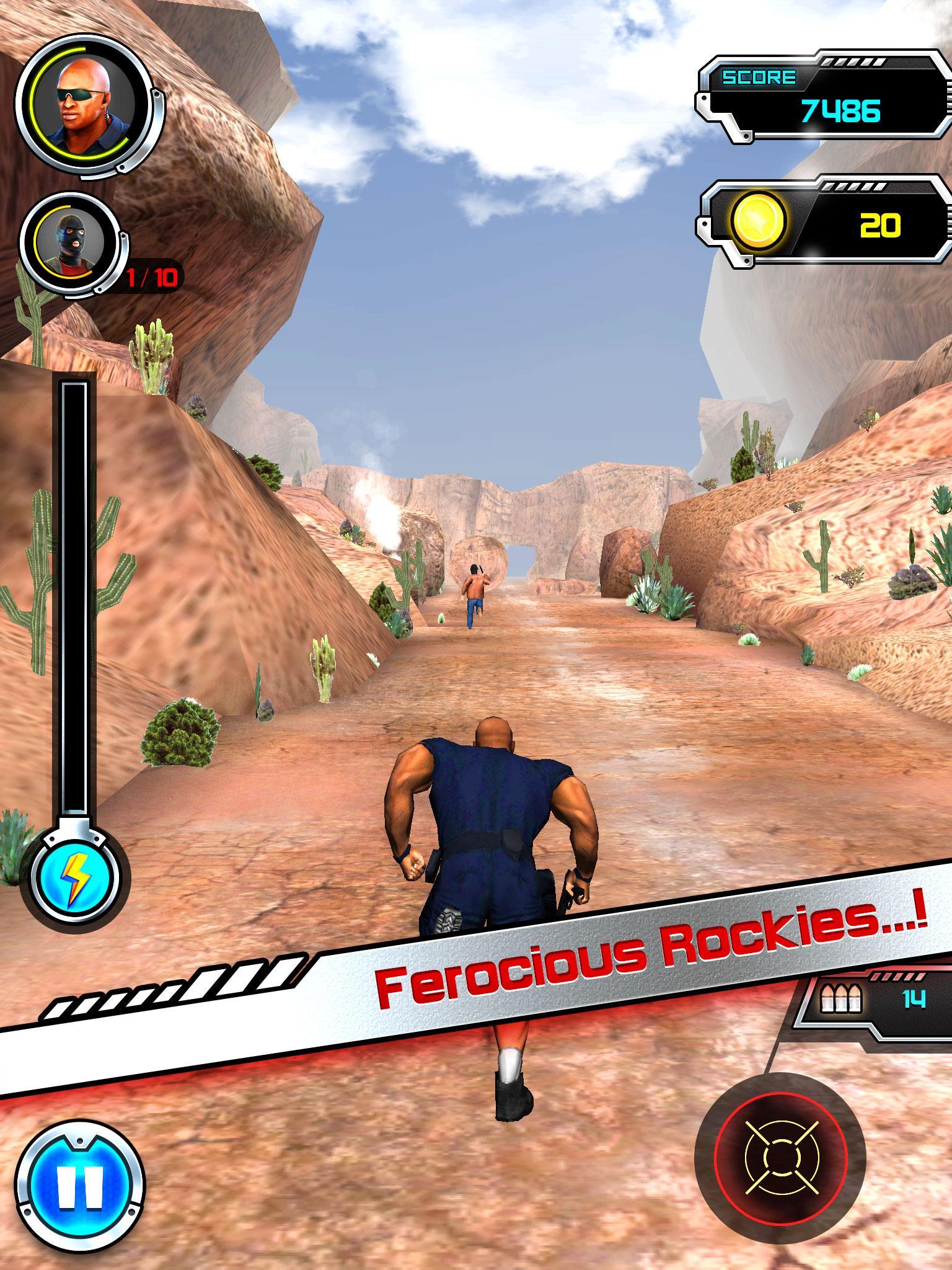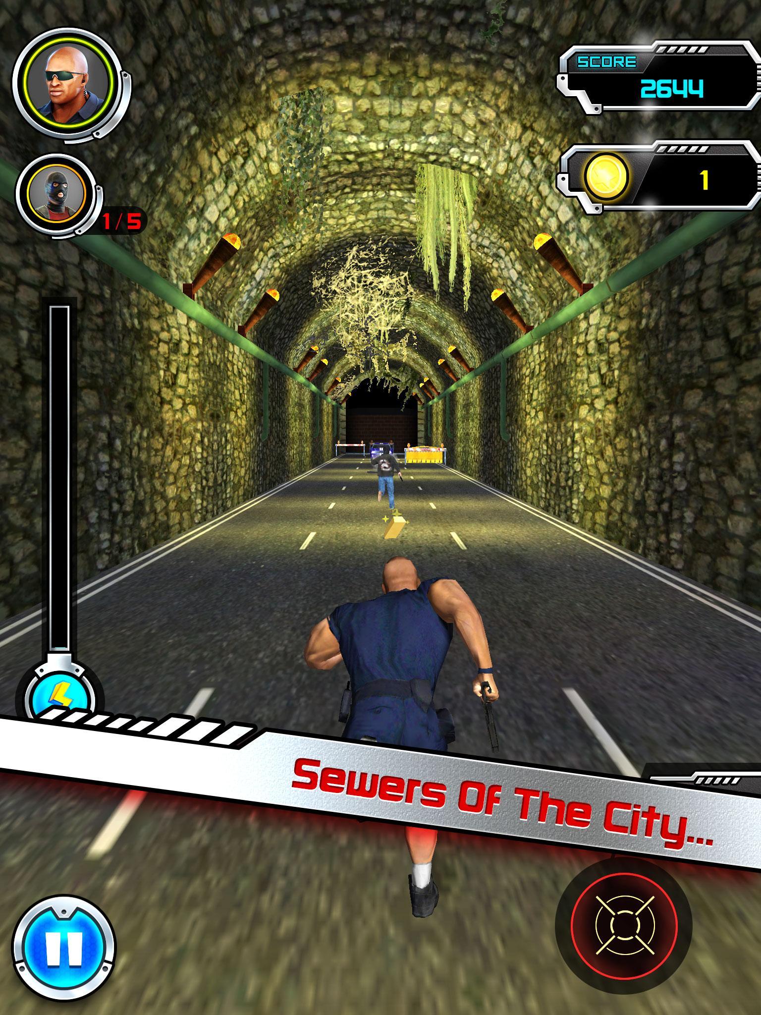 罗尼警察是一款别出心裁的跑酷手游,玩家将作为警察展开追捕罪犯之旅,在传统跑酷玩法上加入战斗射击元素,同时丰富的场景中也要注意各种障碍和行驶的车辆,不过比较好奇的是,你干嘛不开车追罪犯呢。