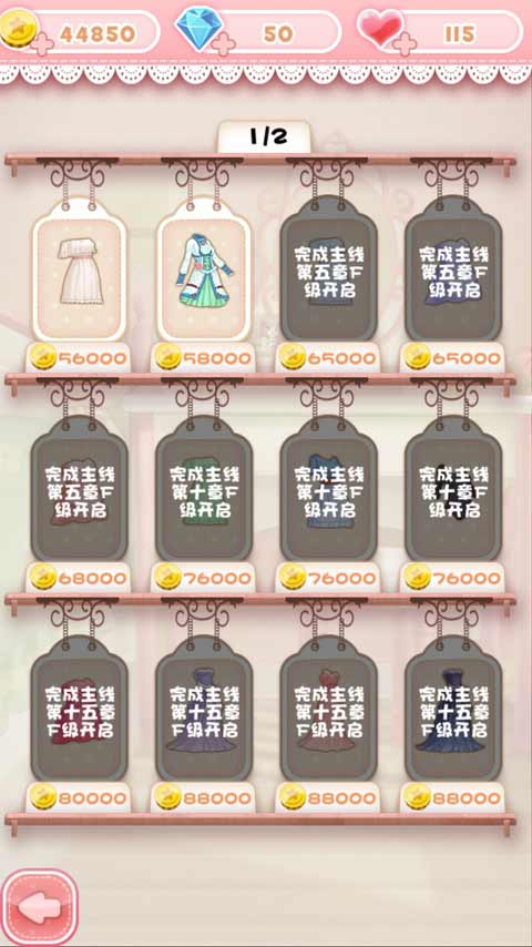 4、界面正上方显示钱币数量;